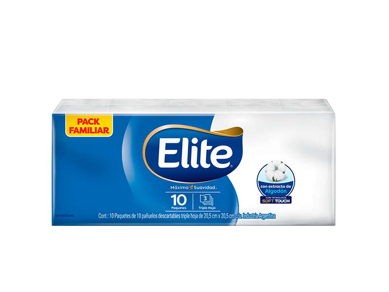 Pañuelos de puro papel tissue triple hoja que garantizan la mayor blancura y suavidad.