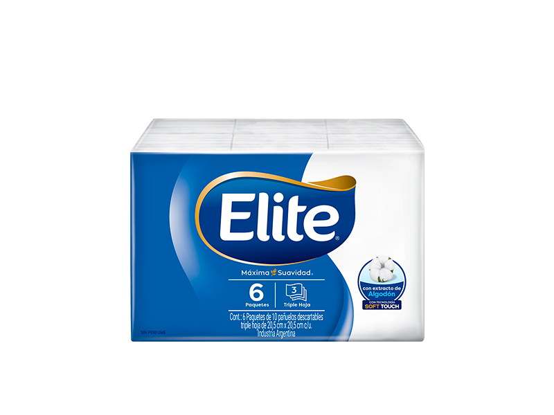 Pañuelos de puro papel tissue triple hoja que garantizan la mayor blancura y suavidad.